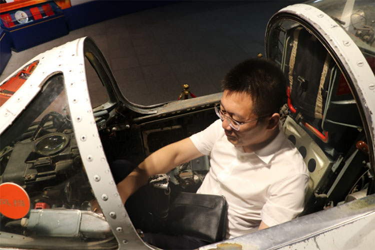 黃總在殲 6 型飛機座艙內(nèi)體驗殲擊機飛行員的工作環(huán)境